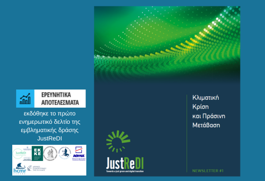 Εκδόθηκε το πρώτο ενημερωτικό δελτίο της εμβληματικής δράσης JustReDI [Ανθεκτικότητα, Συμπερίληψη και Ανάπτυξη: Προς μια Δίκαιη Πράσινη και Ψηφιακή Μετάβαση των Ελληνικών Περιφερειών] χρηματοδοτούμενης από το πρόγραμμα Ελλάδα 2.0 ΕΘΝΙΚΟ ΣΧΕΔΙΟ ΑΝΑΚΑΜΨΗΣ ΚΑΙ ΑΝΘΕΚΤΙΚΟΤΗΤΑΣ.